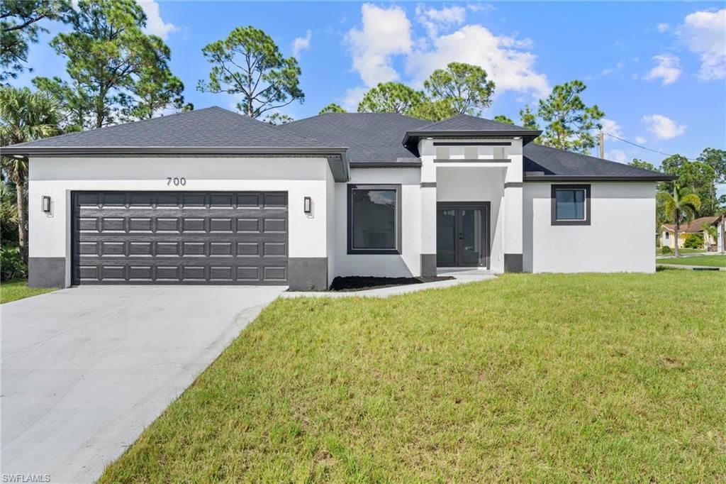 This stunning newly constructed home introduces an element of modern elegance to the affordable market of Lehigh Acres. This remarkable residence boasts three spacious bedrooms alongside a versatile den, each equipped with walk-in closets that provide ample storage space for all your needs. Every inch of this home shines with brand new, state-of-the-art appliances that promise both style and efficiency. Homeowners will be granted peace of mind through a comprehensive one-year structural warranty, ensuring that every aspect of the construction meets the highest standards of quality and durability. Furthermore, this home is fortified with hurricane-resistant windows throughout, offering unparalleled protection and security against harsh weather conditions. This feature not only enhances the safety of the occupants but also provides energy efficiency and noise reduction, making this house a truly serene haven.